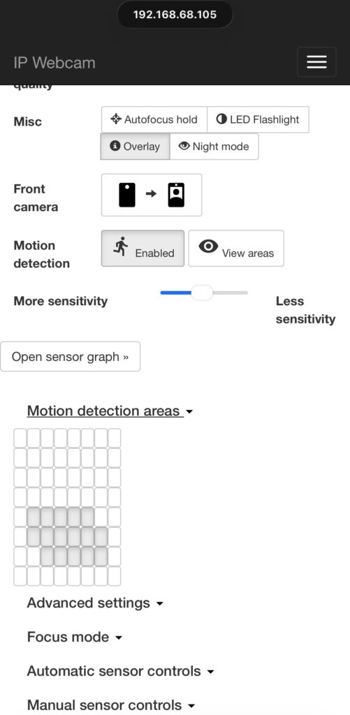 „Detection sensitivity“ nastavte na 470. Platí: čím vyšší číslo, tím nižší citlivost. Já jsem se k téhle hodnotě dopracoval testováním přes webové rozhraní aplikace — u vás se může lišit.